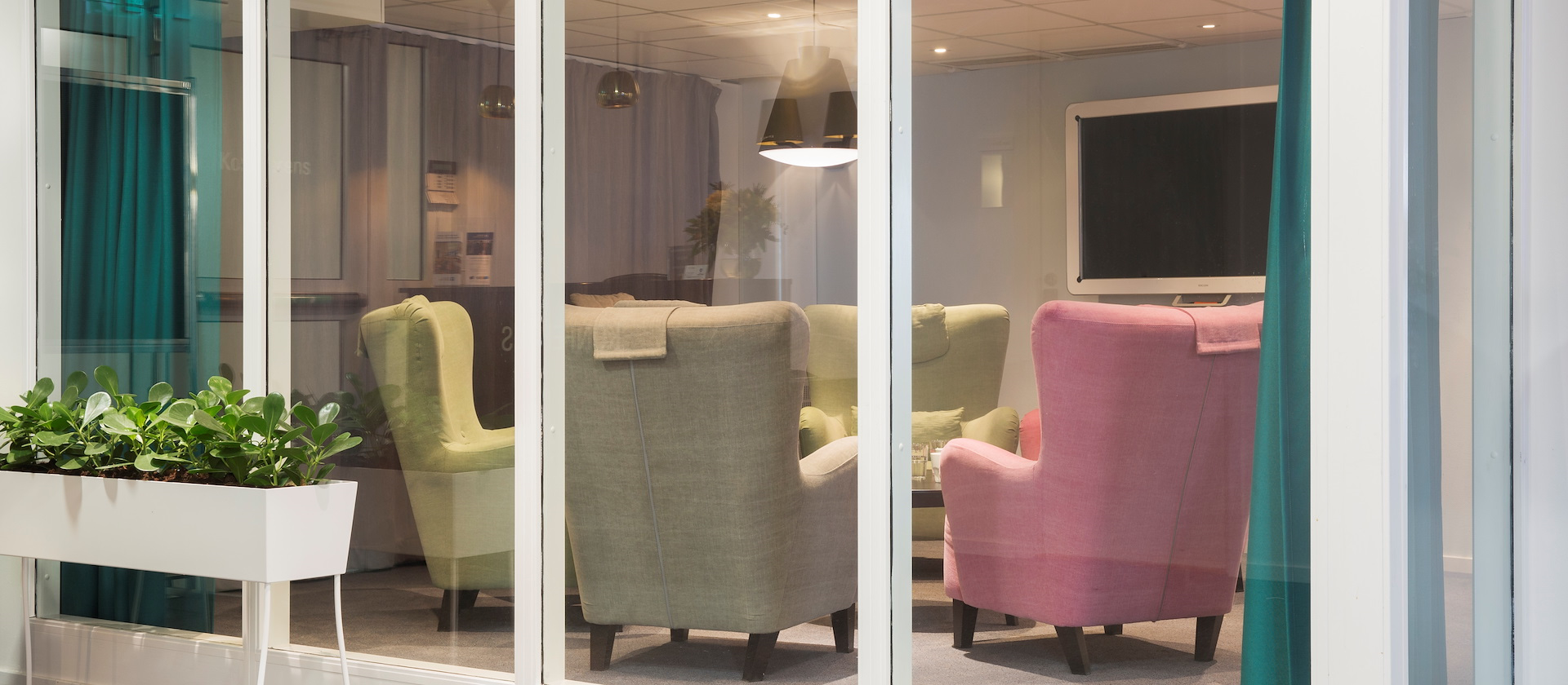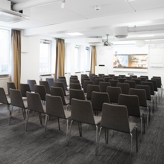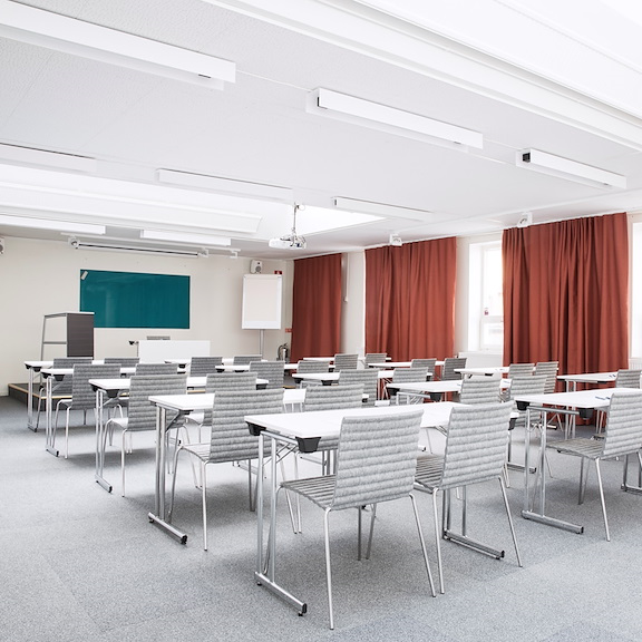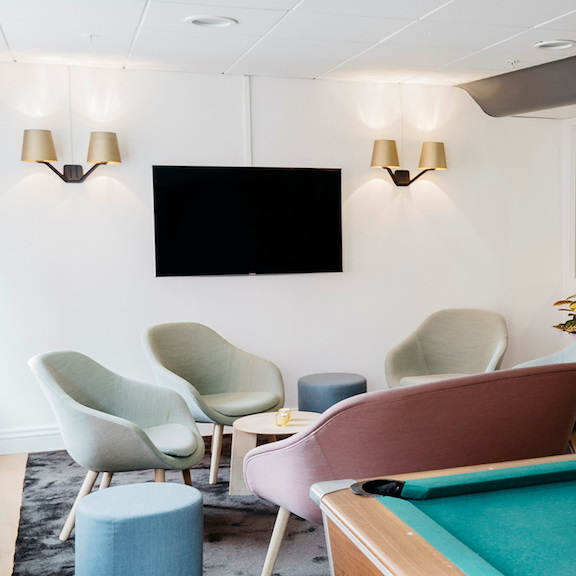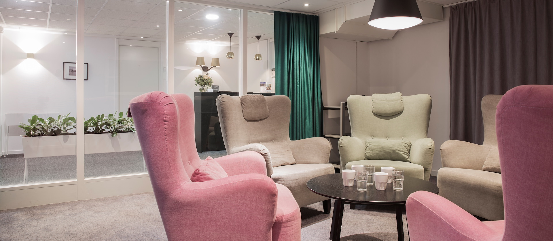 For the small and relaxed meeting, Skevik does the trick. In this cozy little meeting room, the atmosphere breaths unity. Large and relaxing armchairs, seated toward each other in a circle. We've taken special precautions to make the light as comfortable as possible since the only windows is toward the outside lounge – but fear not, there are curtains to block the view.